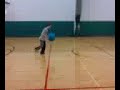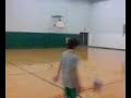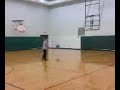 Nick shoots a half court shot with a ball that is to big for the rim |